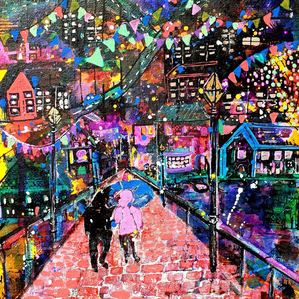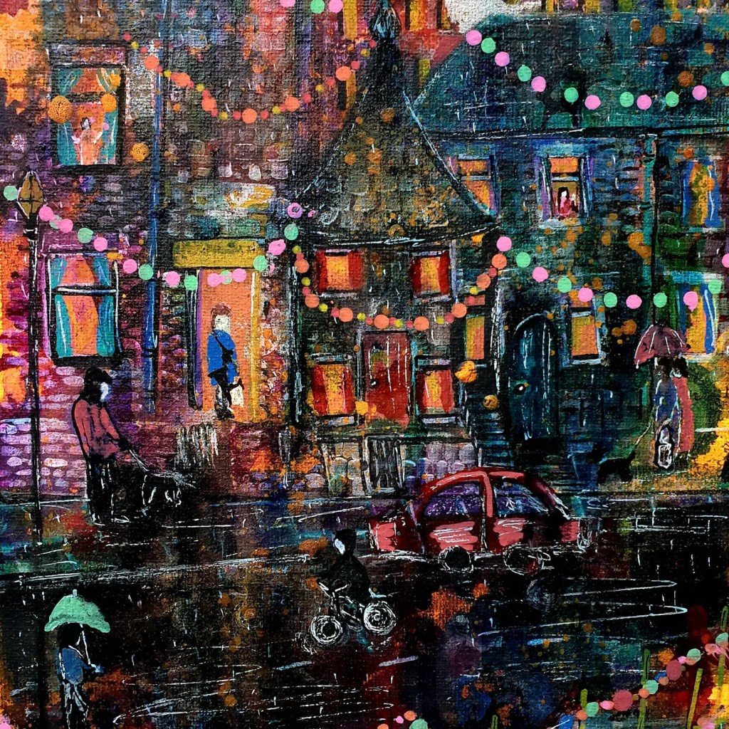 I love the rain and when the nights start to draw in . I’ve tried to recreate that cosy feeling , when the street lights reflect into the puddles, lights go on but curtains are still open .